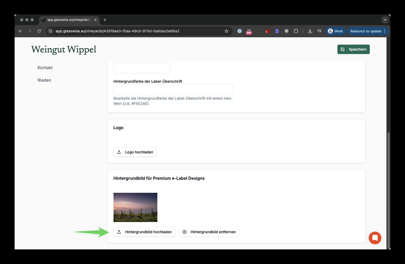 Dann ganz nach unten scrollen. Bei „Hintergrundbild für Premium e-Label Designs“ dann ein Bild hochladen.